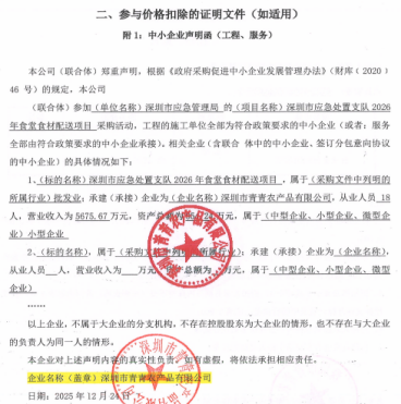 深圳市应急处置支队2026年食堂食材配送项目中标(成交)结果公示